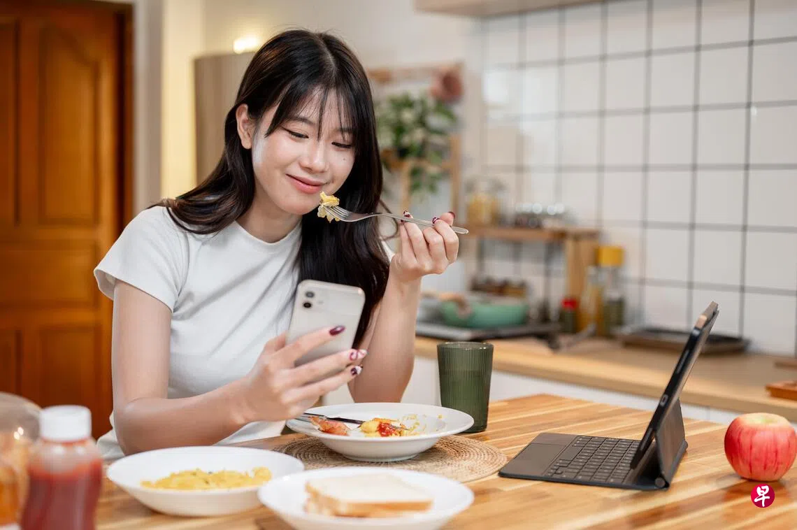 巴西拉夫拉斯联邦大学与荷兰乌得勒支大学医学中心联合开展了一项实验研究,招募了62名年龄在18至28岁之间的志愿者。参与者在三种条件下进食:一、专心吃饭;二、边吃饭边刷手机;三、边吃饭边阅读纸质杂志。结果显示,边看手机边吃饭时,平均摄入的热量比专心吃饭多约15%。在体重超重的受试者中,这一差异更为明显。研究还发现,边看手机边进食的受试者,更倾向选择高脂肪食物。