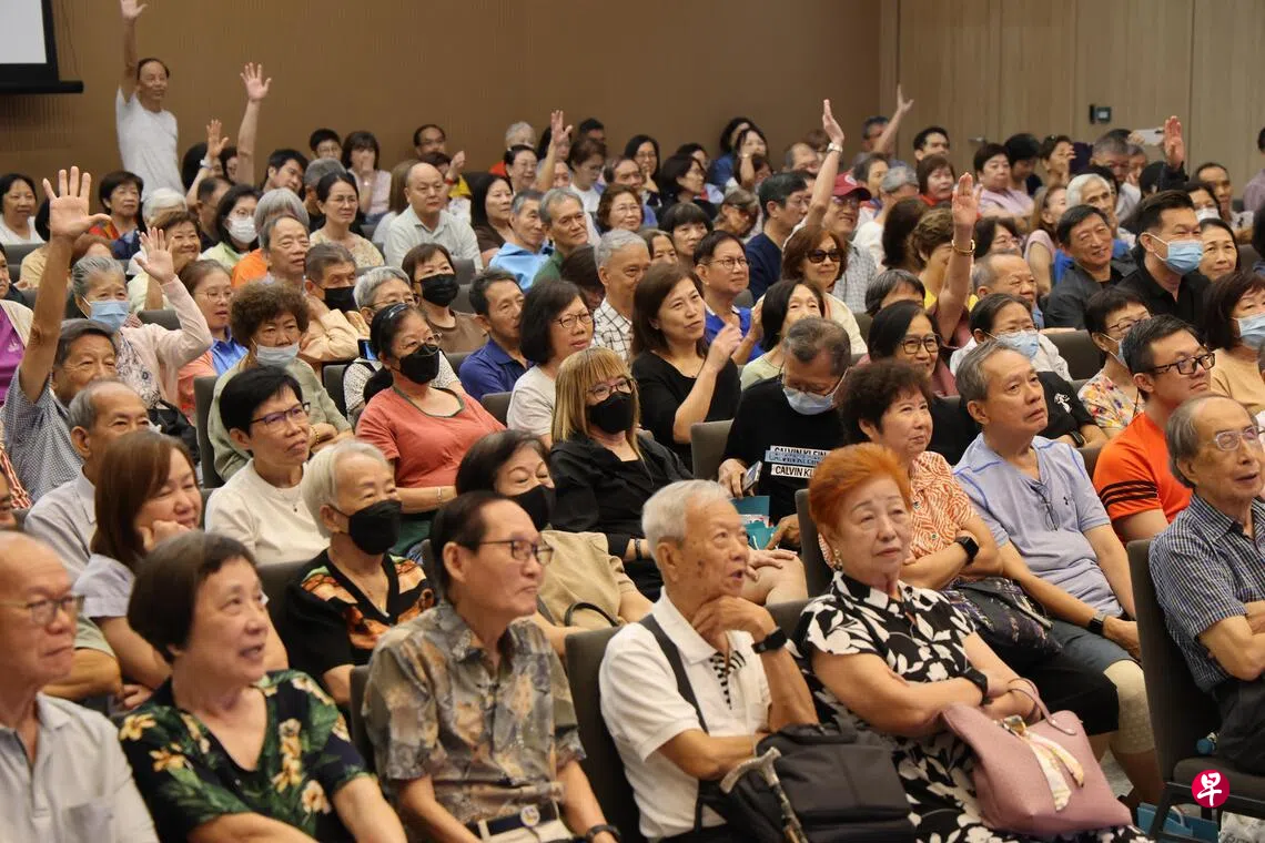 林玉英(75岁,前教师)是最早抵达现场的读者之一,她订阅《联合早报》40多年。重视养生的她常报名参加早报讲座,平时还用手机拍下早报副刊乐活版的报道,方便重读和转发。她说:“我对三个讲题都感兴趣,而且可以现场向医生提问,机会难得。”