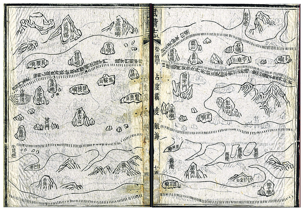 郑和七下西洋访问各国,随行官员记录了东南亚民俗风貌,因此明代出版多部游记和航海手册,如马欢《瀛涯胜览》、费信《星槎胜览》和巩珍《西洋番国志》,以及张燮《东洋西考》和《顺风相送》,还有收录在《武备志》的郑和航海图——茅坤图。