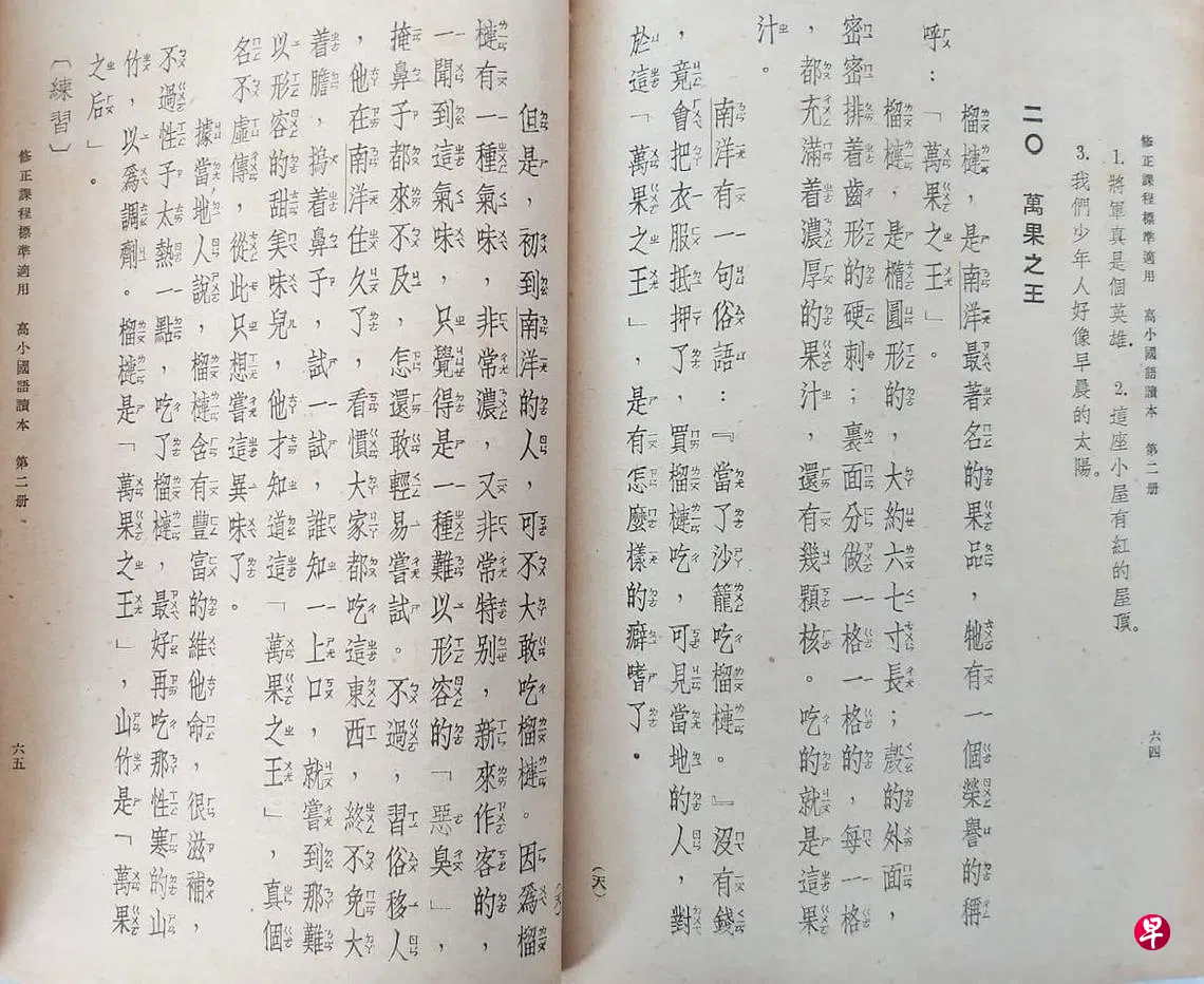 1950年代,我在传统华校念小学。初小四年,华文课本是《最新南洋华侨小学国语读本》,编者为朱文叔与吕伯攸;高小两年,华文课本则是《新编南洋华侨高小国语读本》,编者多了两位:徐亚倩与杨复耀。两套书都由新加坡中华书局发行,总共12册,我每年读两册。