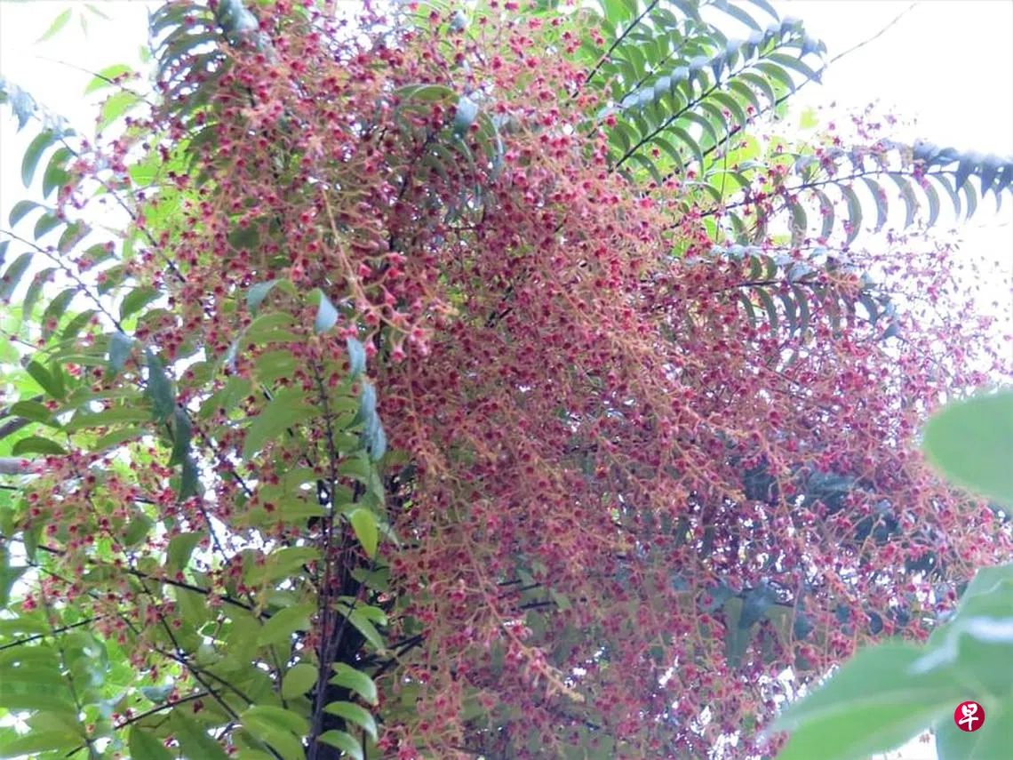 徒步公园连道,意外地看到几棵东革阿里花盛开,虽然小小的,可是密密的,一串串怒放如吊钟似的挂在树巅,令人惊艳!看来此树还可当作观赏植物。