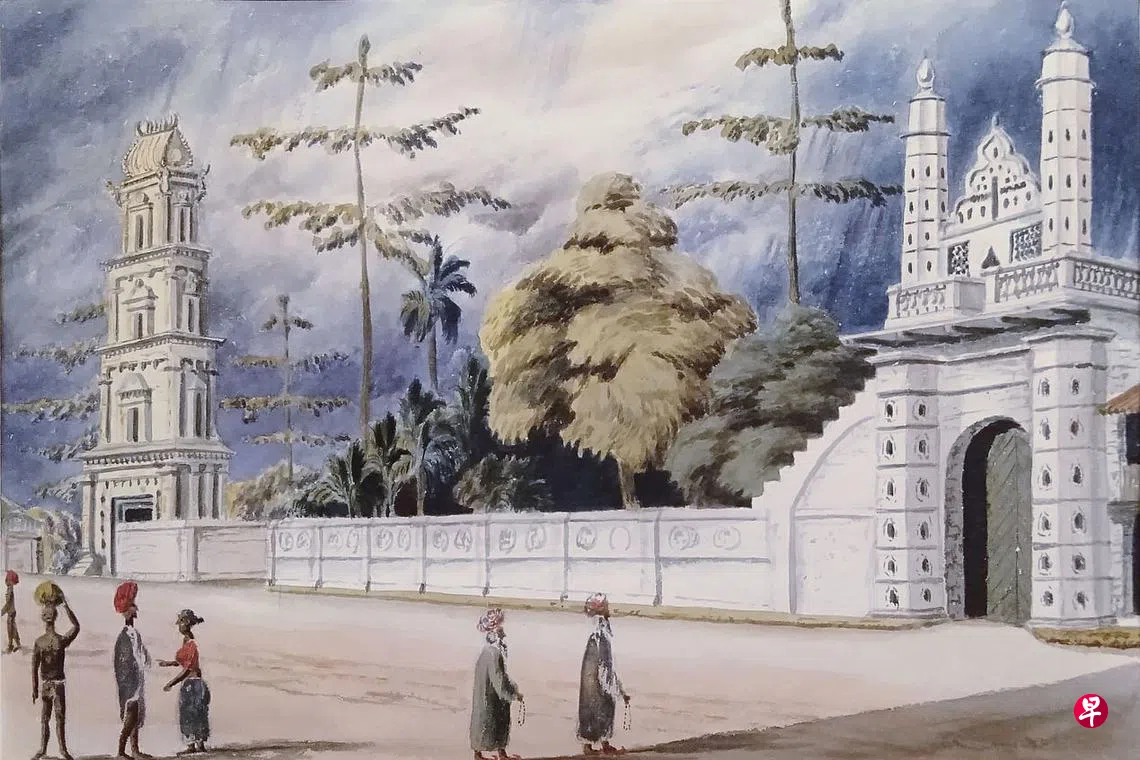 直落亚逸的阿尔阿布拉回教堂(Masjid Al-Abrar)和纳宫神社(Nagore Durgha)都建于1820年代,崇文阁部分土地也购自印度人,莱佛士拨给比莱的一列土地相信就在这里。随着比莱放弃这地段,华人开始流入,后来建造天福宫。桥南路的詹美回教堂(Masjid Jamae Chulia)于1826年落成,和马里安曼印度庙,以及对面安祥山脚的甘榜素素(Kampung Susu)形成最早的印度社区,阿裕尼曾出资捐赠四口井,其中一口就在这里。在恭锡街和水车街路口,还有一座建于1859年的印度庙,这说明在此的印度社群规模不小。