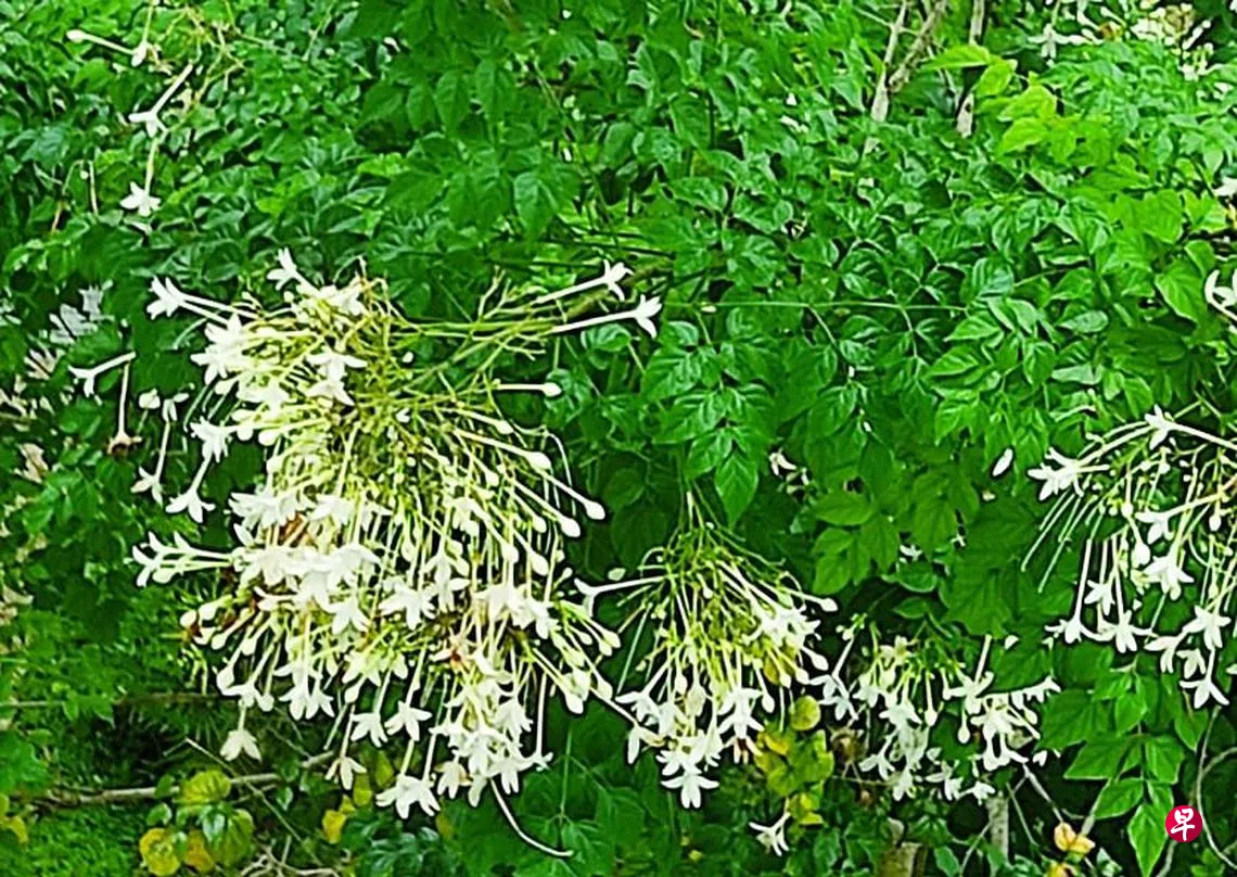 姐妹树在树上盛放时花香并不显著,要到落地才散发芬芳。
