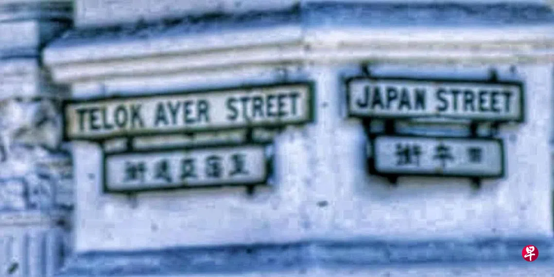 朋友传我一张照片,是一条街道转角处,上面钉上两面中英文路牌,一面是直落亚逸街(Telok Ayer Street),另一面是日本街(Japan Street)。这张照片肯定是在1945年,日本军占领新加坡时或以前拍摄的。