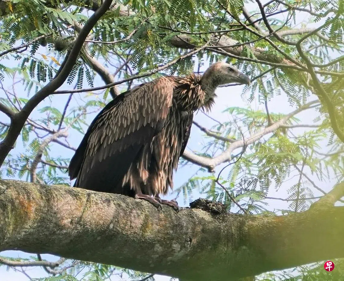 去年的最后一天,它们出现在新加坡植物园,引来大批摄影爱好者,媒体也竞相报道。之后有一只秃鹫还因太疲倦或太饿了,坠地后获救,万态保育集团救治之后,尝试放飞,第三次才成功。