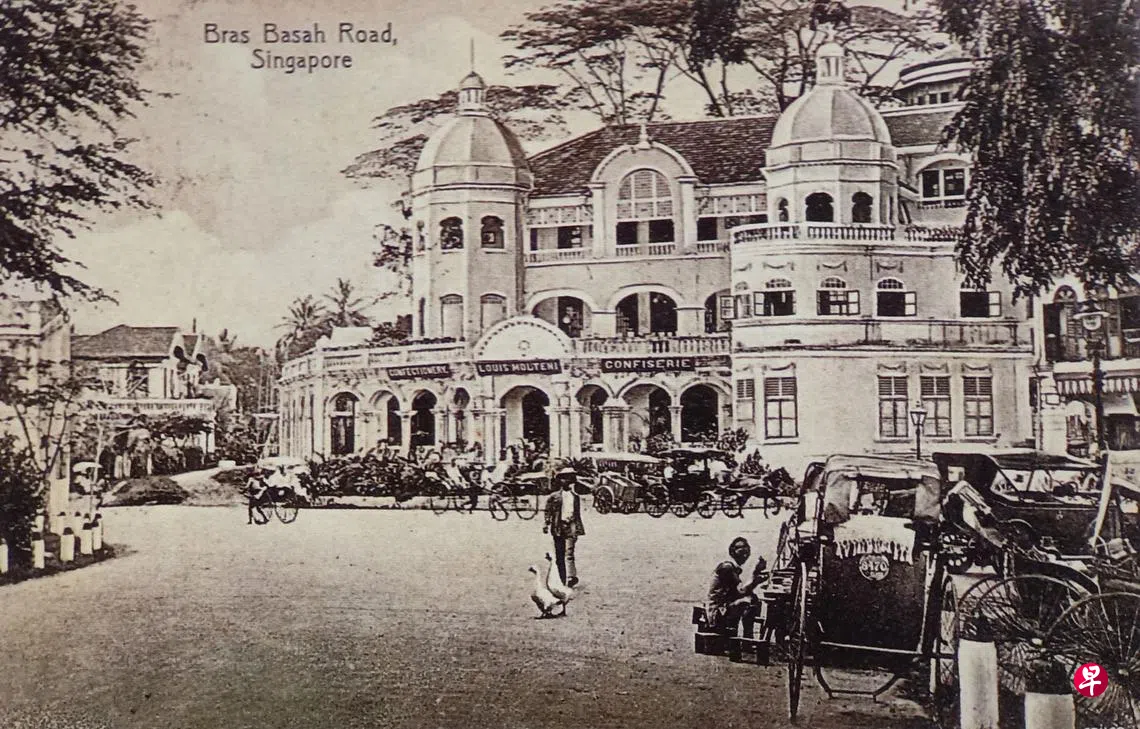 如果把图片放大,可以看到建筑物正门的招牌:路易斯·摩尔登尼糖果甜点店(Confectionery Louis Molteni Confiserie),所以算是名副其实的“糖果屋”。英国在维多利亚女王时代,国力突飞猛进,人民的经济水平提高,对于住宅也越发追求典雅精美,加上丰富资源和多样化的材料,形成新的维多利亚式建筑风格。建筑的特点是有高而尖的塔式屋顶,窗口突出于外墙,多用方形或圆形的立柱,屋外还有栏杆围绕着的走廊和阳台等,使整座建筑物散发出精雕细琢的气息,这些特征都可以在“糖果屋”看到。