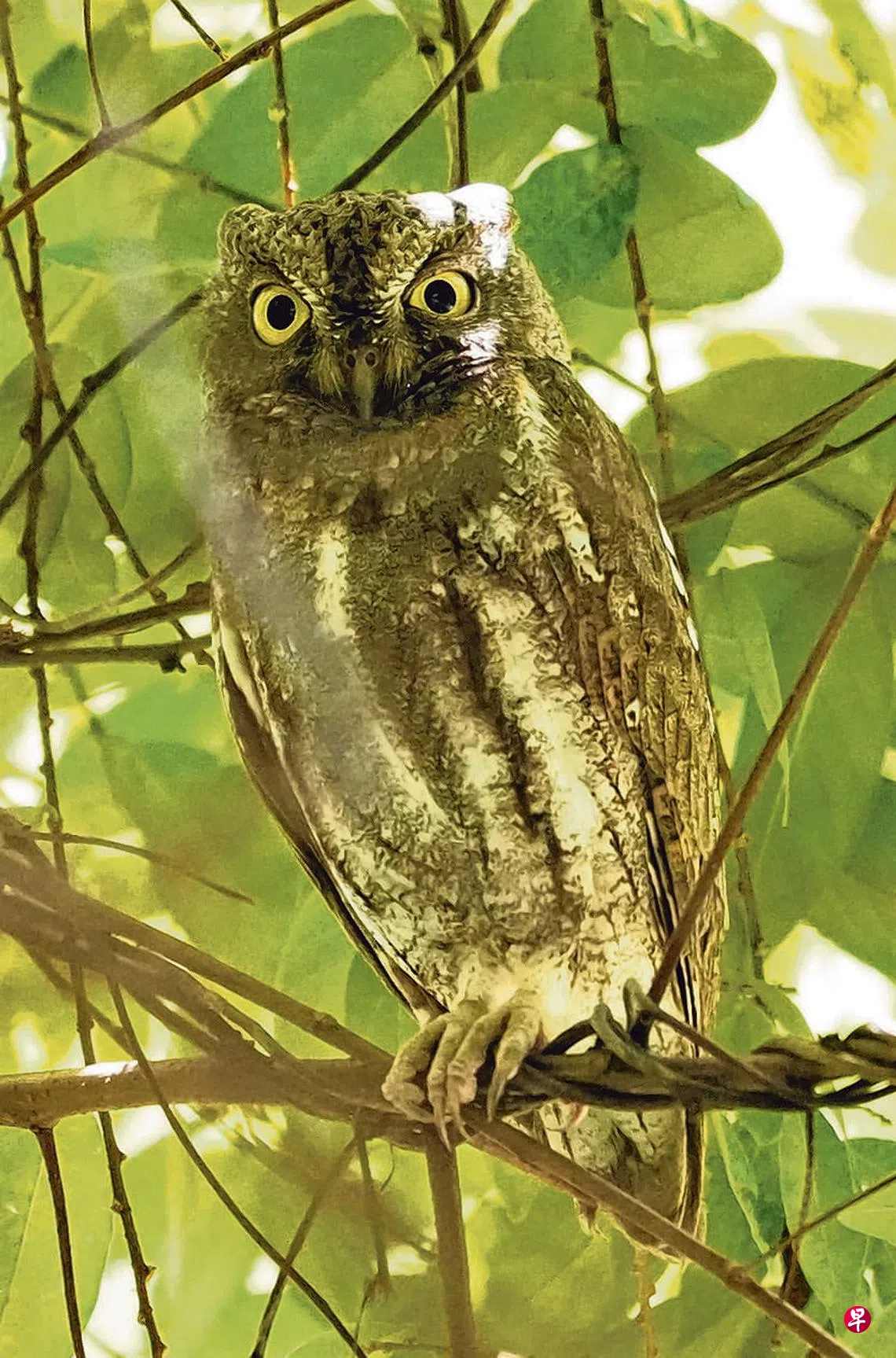 去年11月一只罕见的猫头鹰,红角鸮(Oriental Scops Owl)晕倒在裕廊组屋路边,后来飞到树上,引起40多名赏鸟人士和公众聚集在树下围观拍照,惊动警察到场劝请大家保持安全距离,当时错过了拍摄。