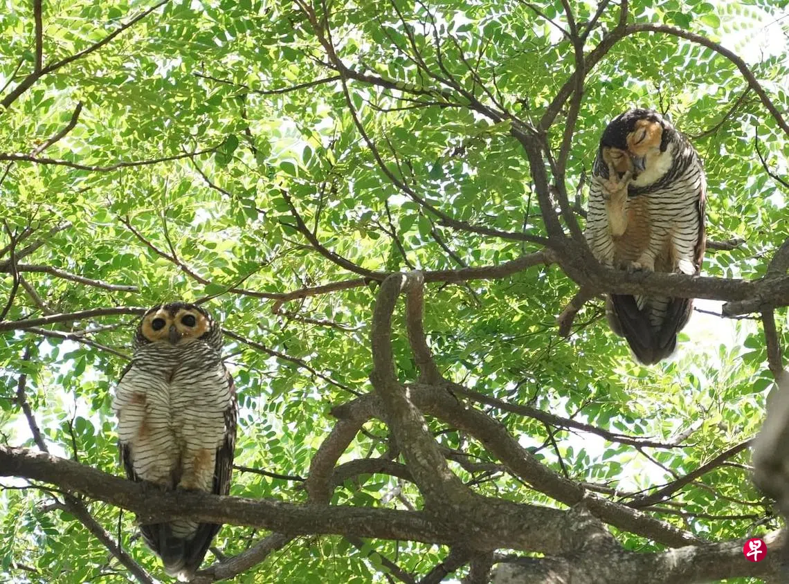 国家公园局资料显示,点斑林鸮具有独特的无耳头和大胆黑色条纹的下半身,是新加坡最大的猫头鹰。它属于极度濒危的鸟类,公园局在2019年估计约有22头左右。
