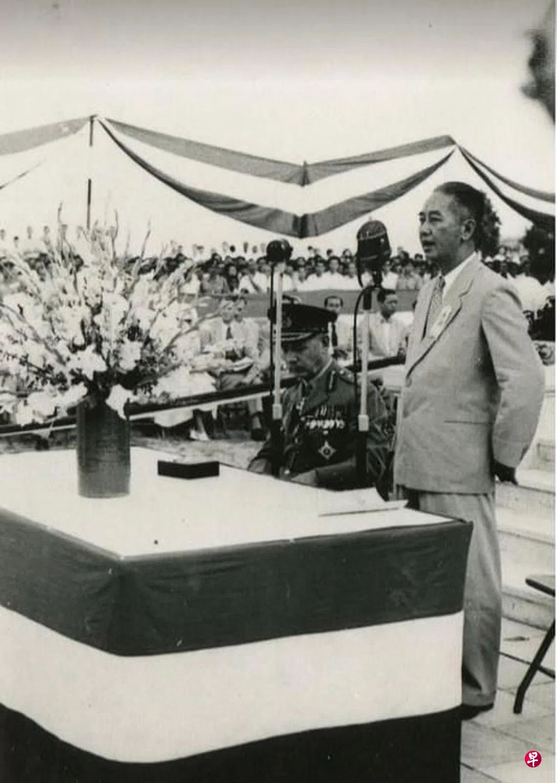 林庆年自南来之日便与九龙堂接下深厚情谊,不仅将家族成员的牌位供奉于此,也成为该机构的领袖,特别是在二战后,这位年轻的创会董事已成为德高望重的宗长,他担任会长多年,1958年成为荣誉会长,担任该堂春祭和冬祭的主祀至其辞世。林庆年的睿智与虔诚引领九龙堂走过20世纪中期马来亚动荡不安的岁月,是该机构二战后转型的关键人物。