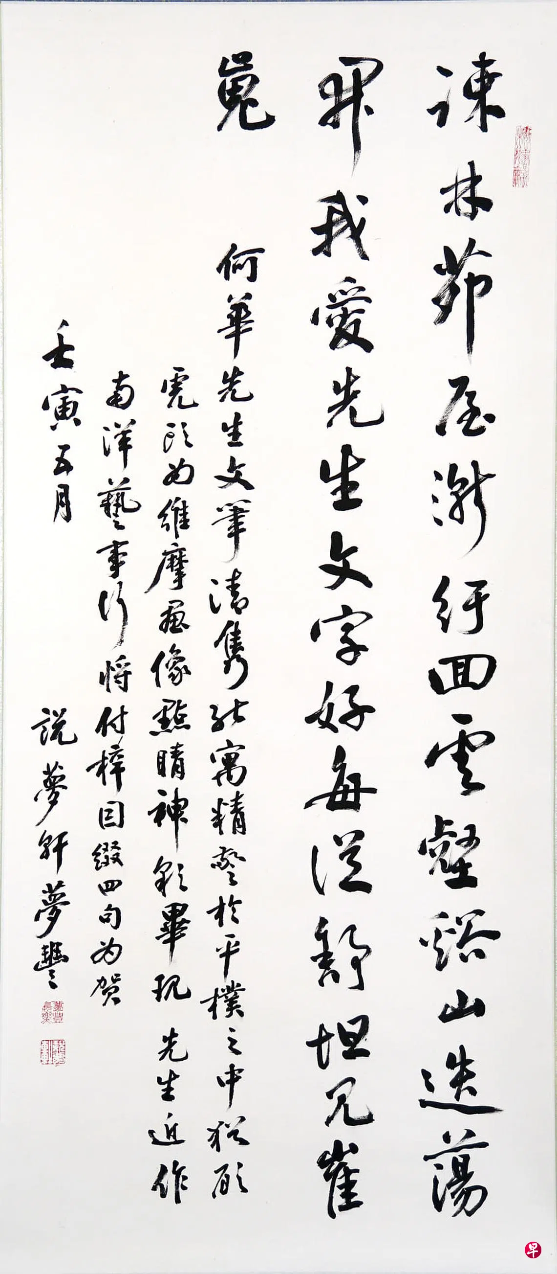 何华先生文笔清隽,能寓精警于平朴之中,犹顾虎头为维摩画像点睛,神彩毕现。先生近作《南洋艺事》行将付梓,因缀四句为贺。壬寅五月 说梦轩梦丰。