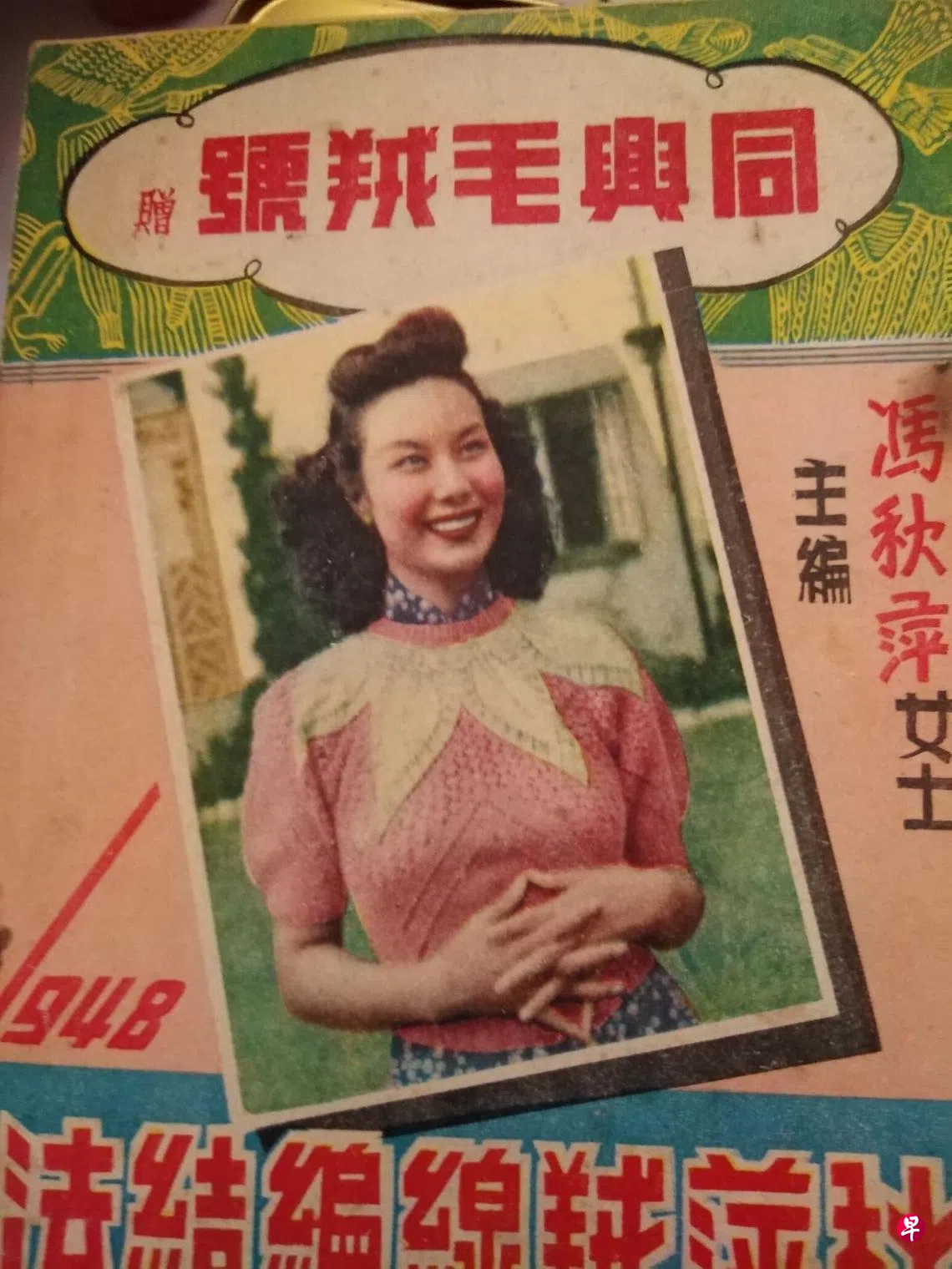 1965年年9月的官方刊物《南国电影》封面李丽华,黑俏女帽底下露出七分脸,她年纪大了,比起后辈胡燕妮、方盈,已是阿姨等级,可眼睛依然如宝石,樱唇润泽绯绯,美艳如同天边神祇。邵氏公司前身天一,默片皇后胡蝶也曾于此焕发光华,一手点在粉腮,梨涡嫣然。邵氏下南洋,马来亚(1963才称马来西亚)戏院多是他们家的产业,至于香港影城,自是后来的传奇——1947年,李丽华还在歇浦潮,仍然是海派银灯佳人。那本《绒线编结法》,冯秋萍女士主编,封面笑得灿烂的是李丽华,她两手玉指交叉握着,身上是隔色大秋叶短装,上海当时少见的,书册里有教导此款绒线衫的织法,几针几针的,线要淡色深绿色相间;丽华烫发在后面蓬松松散着,顶上一簇鬈发,高高的,还是演《假凤虚凰》的样子;所谓秋叶图案编织在双肩胸前,俨然古装的霞帔。册子还有其他明星当绒线衫模特儿,李丽华还示范另外两款:窗格形短外衣和针钩云梯子形女球衫。当年10月出版的册子,预告着明年1948年的流行风向。
