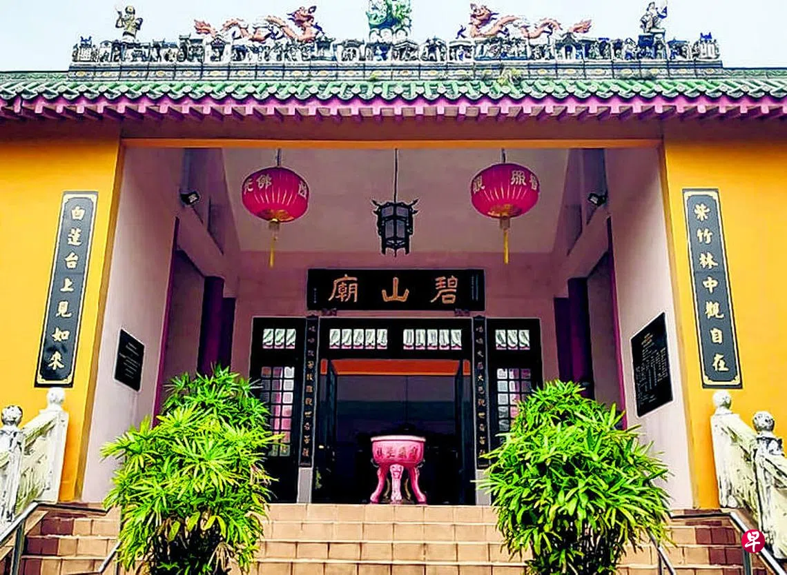 百年历史碧山大庙,也是三合一庙宇。中间大殿供奉观音菩萨,左侧是财帛星群庙,右侧是齐天孙悟大圣庙。根据庙祠现存的一口老铜钟来看,碧山大庙的创建历史似乎可以提早至清光绪十五年(1889)。总之,碧山大庙迄今已有130多年悠久历史。