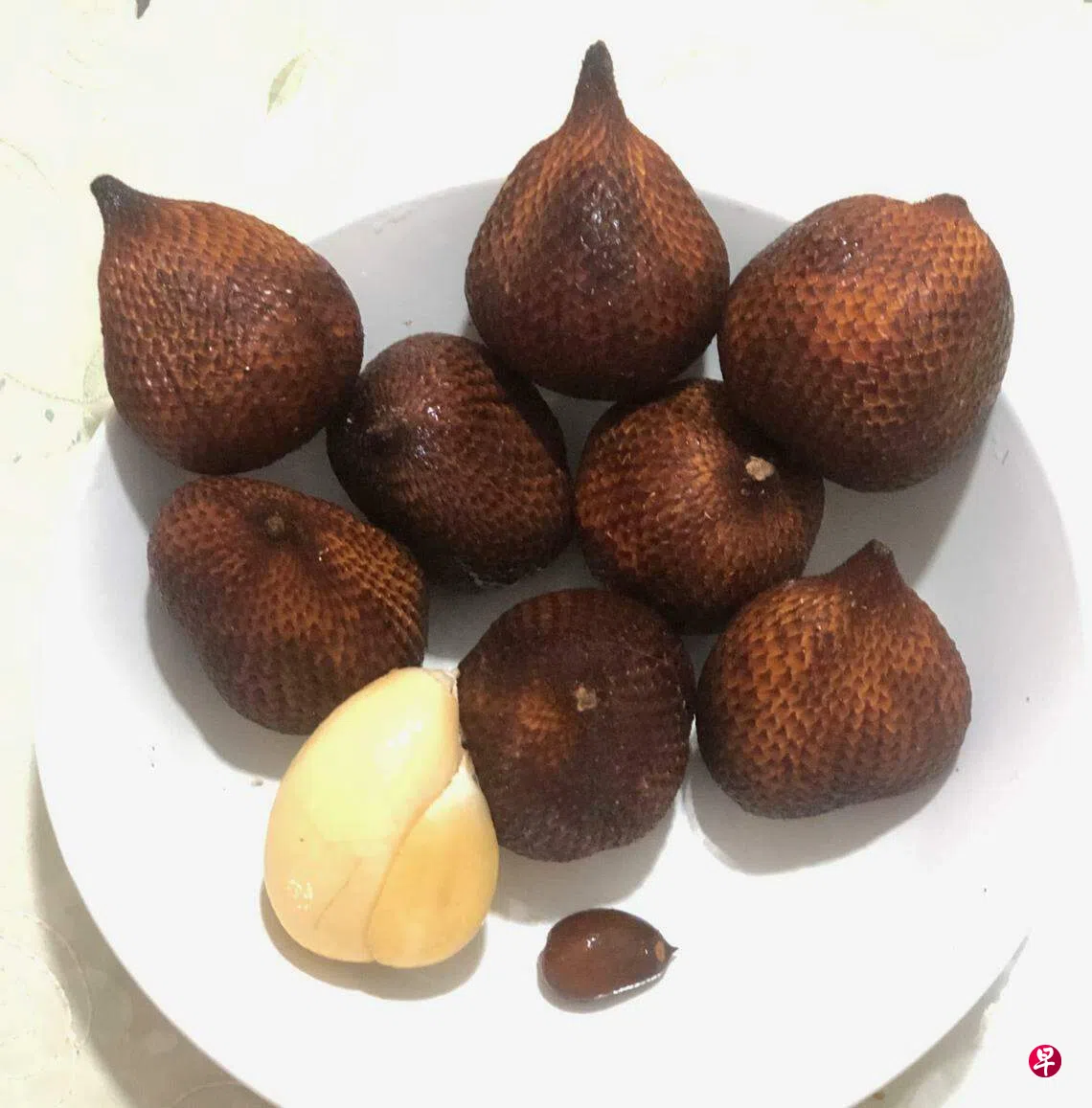 去印度尼西亚峇厘岛旅游时看到一种水果,它外形下圆上尖,果皮很薄,有鳞片状,像极了蛇皮。当地人称之为“蛇皮果”,又称“Buah Salak” 。买了几个尝味道,白中带黄的果肉,味道酸甜,有点像吃青苹果,不过,在吞咽时觉得有点涩涩的。掰开果皮时有些挑战,一不小心会被果皮上尖尖的刺刮破手指。我并不是很喜欢这种果子,但是,家人却对它情有独钟。
