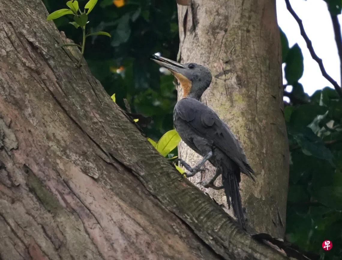 2023年3月12日,新加坡植物园出现一大群观鸟爱好者围观和摄影,整个植物园顿时沸腾起来。原来一只十分罕见的雌大灰啄木鸟出现在那儿的雨林区附近。根据记录,它只在新加坡出现过三次,即是1899年,1904年及2018年。