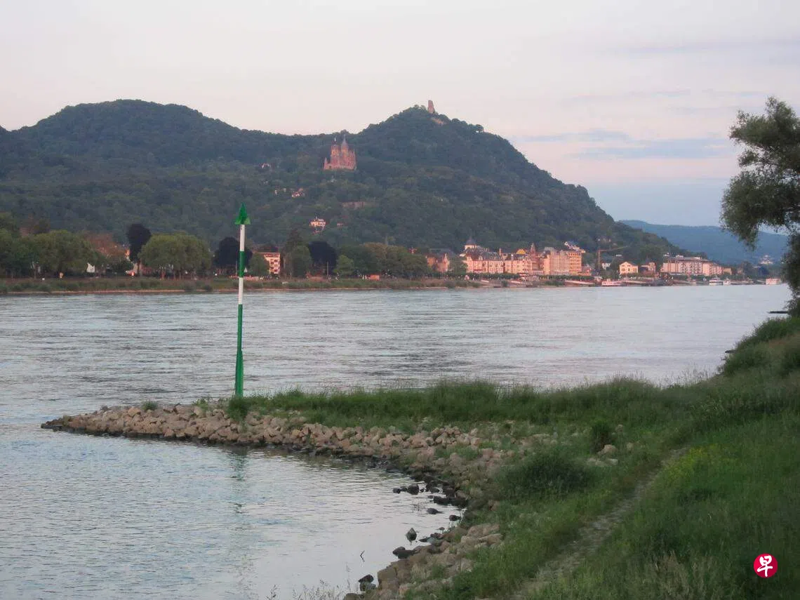 朋友如约而至,二话不说,拉了我就往餐馆后面的河边去。指着远处的大礁石,按下手机,耳边传来了蔡琴的《罗雷莱》歌声。这首歌我们早就耳熟能详,前面的大礁石就是歌曲里的罗蕾莱(Loreley)礁石,我们就在莱茵河边,原来已是身在庐山中。