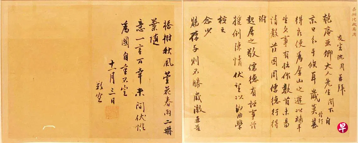 新加坡亚洲文明博物馆(以下简称ACM)二楼的“中国古代士人文化”展厅十分特别,跟其他展厅相比,它显然最容易被忽视。但这小小一间屋子里,却藏着许多中国古代至近代的名家书画与文玩,其中更有多件明清文人尺牍,皆为现居香港的收藏家袁绍良的私人珍藏,现借藏于ACM。其中一封题为《沈周(1427-1509)致吴宽(1435-1504)》的行书体尺牍虽乏人研究,却尤其珍贵。