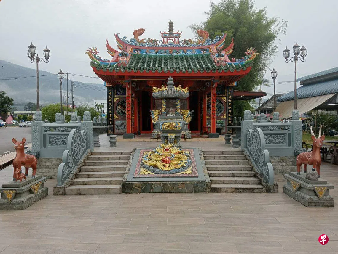 加汀山国家公园旁边为小镇伦乐(Lundu)。初来乍到感觉与其他马来西亚小镇无异。这里民风淳朴。小镇的中华公学和清真寺毗邻而立。这显示早年下南洋并已扎根马来西亚的华人与其他民族和谐共处,与世无争。一大早,我们信步来到小镇中心的巴士站旁,打算在临走前犒劳一下五脏庙。不曾想,这一顿早餐,竟然不经意间让我欣赏到了中华文化在异域开出的一朵精美之花——伦乐云山亭大伯公庙。