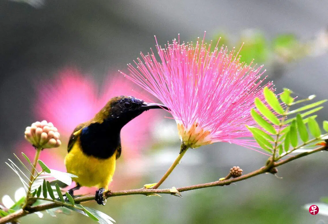 到牛乳场自然公园散步时,无意间看到附近芙蓉园(Fuyong Estate)里的两棵朱缨花(Red powder puff)盛开了,我自然而然放慢脚步,驻足静观。