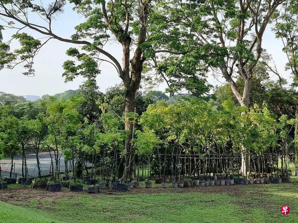 我眼前的这些小黄雨树,是年已八旬的麦全安在去年8月捐赠给南洋理工大学的。他从1980年代起栽种黄雨树,而黄雨树因为缺少了一个基因,种植十分不容易,每种100棵或许只能收成两到五棵。麦老先生花了将近20年的探索耕耘,才突破培植小黄雨树的法门。
