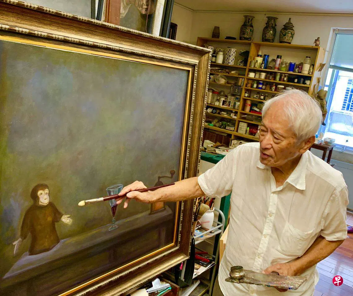 90岁的台湾“超现实主义先驱”陈景容从巷子那头走来。