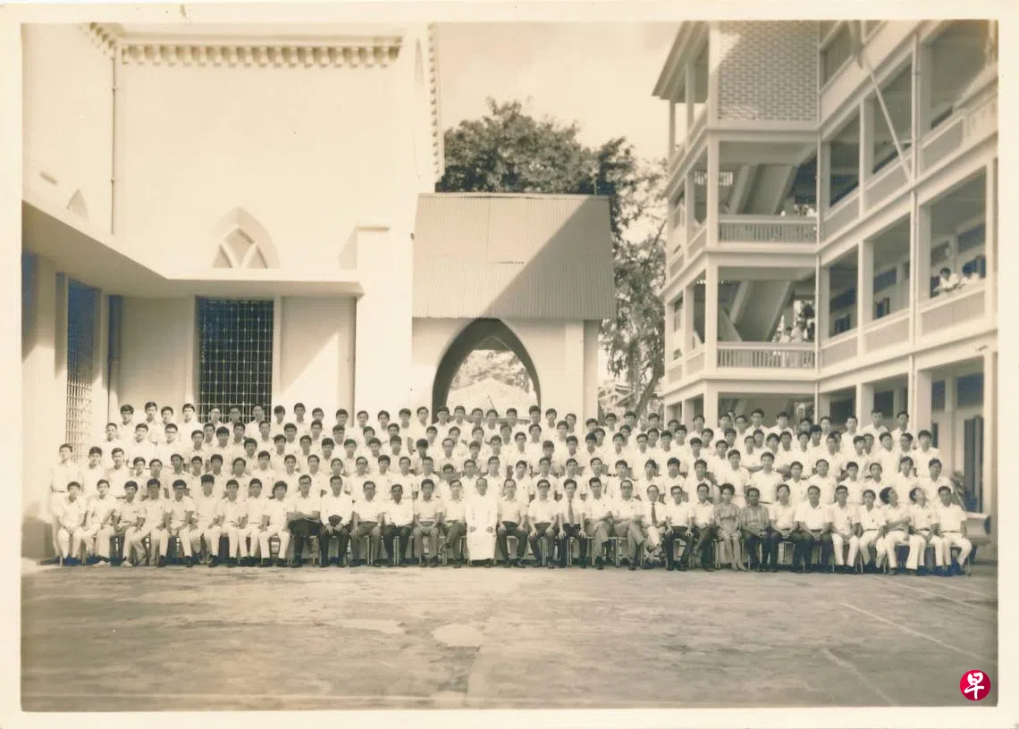 张世典校长负责的中学部校舍,长条状建筑在天主教堂旁侧,与小学部相隔着奎因街。少年时代从小学部课室外的走廊望去,仿佛遥不可及。那是个成年男子的范围,一个我们向往的地方。白衬衫白长裤的中四、高中生学长们,整洁、醒目,完美配合张校长的一身白色长袍(胸前配戴着个不小的木十字架),一尘不染,文质彬彬。