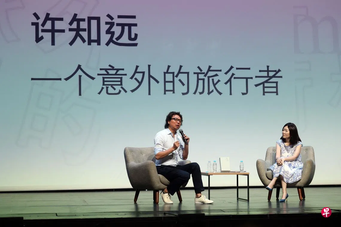 “许知远:一个意外的旅行者”对谈会在滨海艺术中心新电信水滨剧院举行,由《联合早报》副总编辑兼副刊主任胡文雁主持。