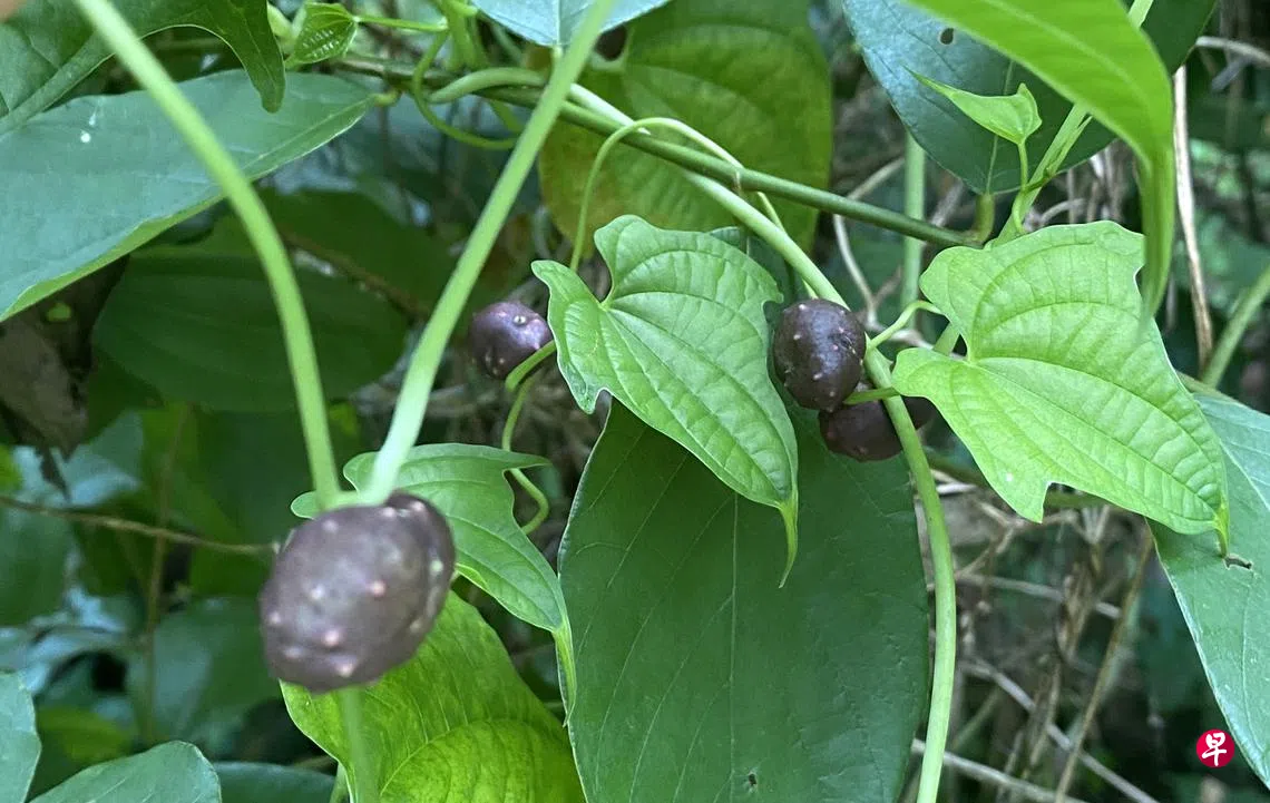 不论地面或树冠上,只要看到叶子类似蝙蝠的植株,就是它!若不加以铲除,便会侵犯大片树林。蝙蝠藤会长出类似芋头、番薯的地下茎,但是它含毒,不适合食用。据说原产地非洲土著,取其毒液射杀动物。土著采收地下茎,必须经一番工序反复清洗、煮过才食用。我们这里并不习惯食用,也不鼓励。