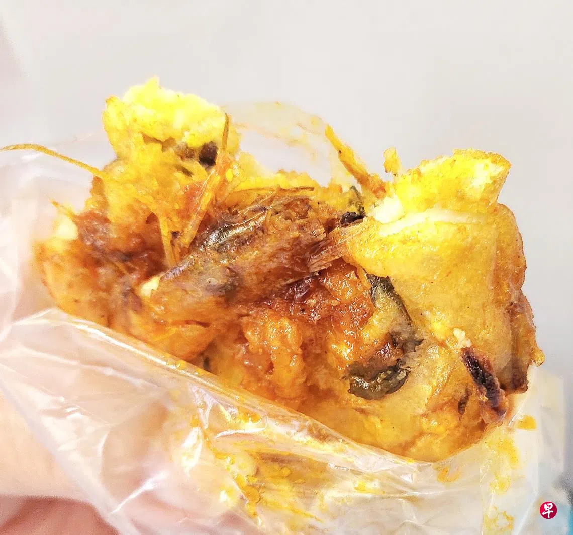 在老家庙弯小贩中心吃早餐,买了摊主亲手制作的潮州虾饼;那味道古早,似乎也是熟悉的爸爸的味道。