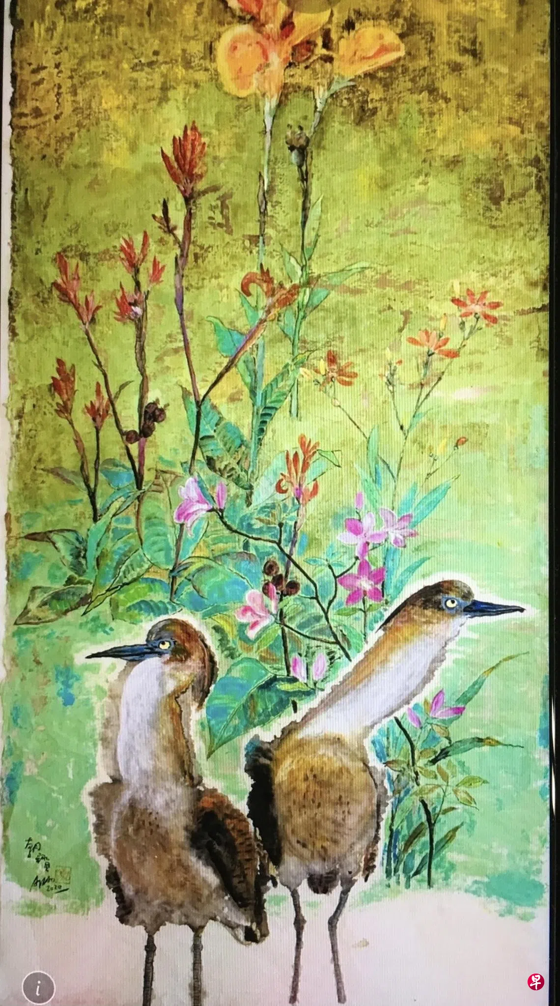 在寻佛的路上订户赠阅文章台湾画家陈朝宝的画作《花鸟的思念》。 (陈朝宝提供)春夏之间,画家陈朝宝带我们散步,说是要看一幅特别的画。缓缓地,沿着内沟溪的河堤步道往前走。他时而和溪里的鱼说话,时而停步凝视郁郁葱葱的树木,聆听虫鸣鸟叫。 他笑着说:“我就住在画里。” 台湾画家上一篇黏土创世纪——看瑞士顽童搭档的黏土天地下一篇回望武吉班让前世 ——椰山尾