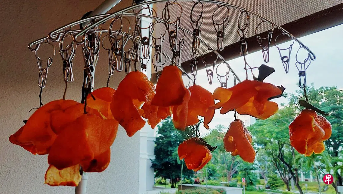 好友送来一盒靓柑,柑果肉细、少籽、皮薄、饱满多汁;尝过美味,难忘。尝过年柑,弃果皮觉着可惜,阳台晾架上排满果皮任其沐浴暖日,每天反复动作,经三蒸三晒,三周后将宝贝收入干净玻璃罐。收藏后再晒它三年六载,日久天长,必修成正果。