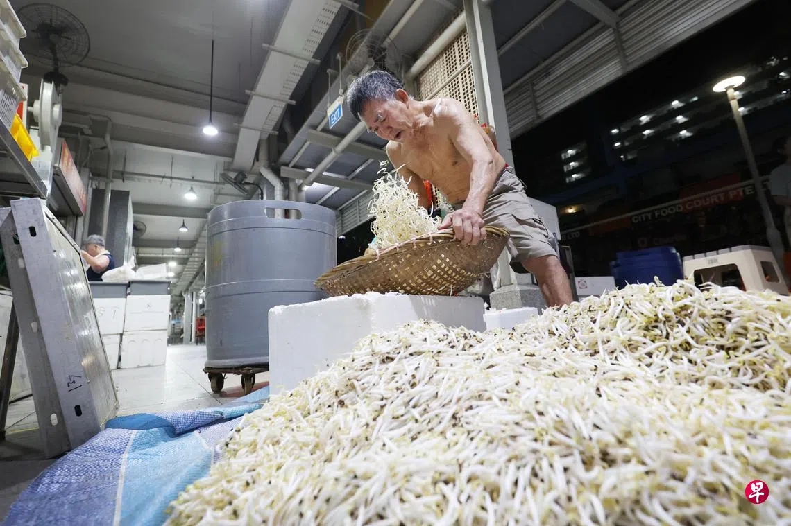 凌晨3时,记者来到文庆地铁站附近明地迷亚路第29座的巴刹。偌大的巴刹很安静,几个摊位已亮灯。望向不远处,豆芽摊贩陈亚五(70岁)正在“跳舞”,很有节奏和律动。整个画面给人的最强烈感觉,却是孤寂。