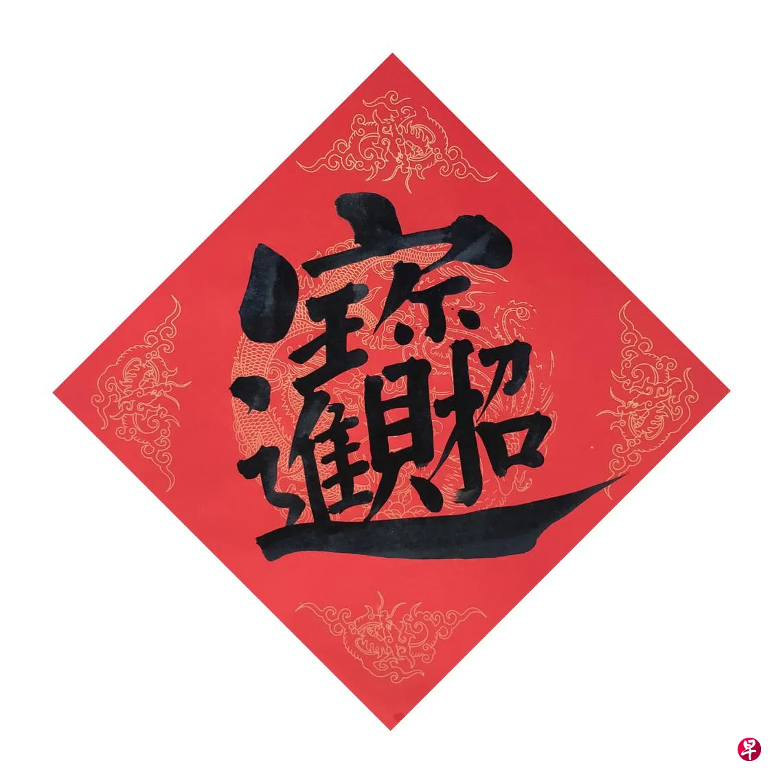 课室的白板上贴着几副老师写的春联,课室里到处是红宣纸,一片红彤彤的就像过年,非常喜气。那些像我一样写得不好的同学,拿着宣纸追着老师,请他帮忙写后带回家。老师是很随和的人,那节课不知帮我们写了多少个“福”字,却依然笑眯眯。