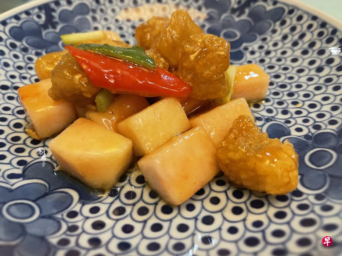 餐馆明亮但无甚豪华装潢,几把吊扇闲情逸致地摇晃着,仿佛去了珠三角人家的简朴客厅。听着后方厨房传来不间断的油烟机轰鸣,炒镬与镬铲正热烈碰撞着,空气里弥漫着粤菜最玄妙的关键,镬气。