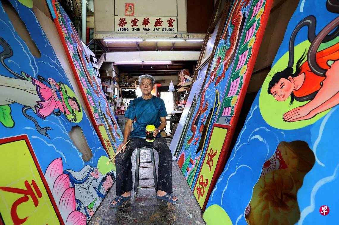 2008年媒体采访梁丰华时曾报道,他是当时仅存的一两位仍以手工绘制活动牌楼和舞台布景的师傅。17年过去,这行依旧没有生力军加入。堆满新旧牌楼与零乱工具的昏暗画室里,只剩下70岁老人的孤独身影,与一段无人问津的过往在对话。