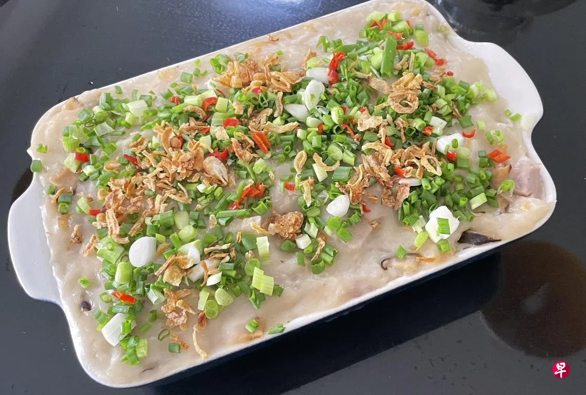 我严格依照食谱所教导的用料、分量和步骤,但制作出来的芋头糕却超软不成形。看着失败的成品在盘中瘫软如泥,微波炉上散落的粉浆仿佛都在嘲笑我的失落。总结问题的症结,就是食谱的水和粘米粉的比例不恰当!