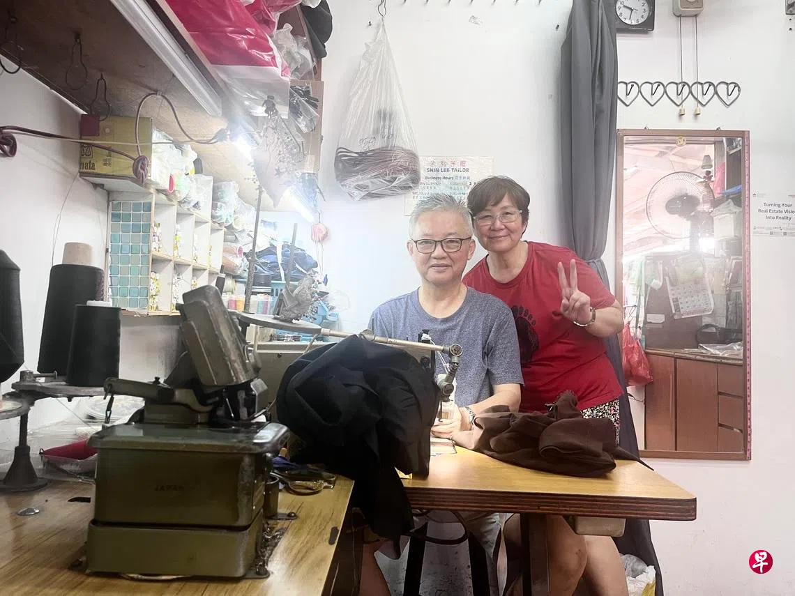 戴眼镜的老裁缝低头踩针车,正专注于修改裤子。同样戴着眼镜的裁缝夫人一边熟练地拆着西装裤裤脚,一边回答一名满头白发的男顾客:“有开,今天有开店,明天也开。”男顾客满意地点点头,转身离去。