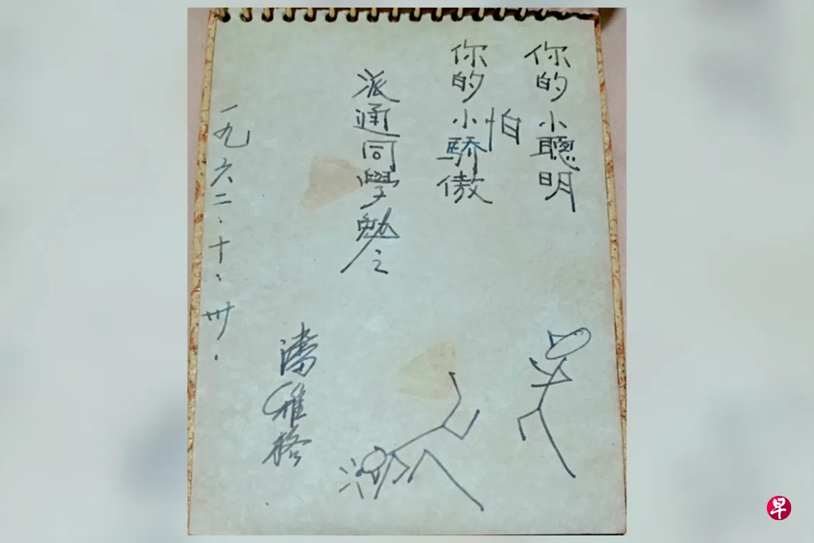 “你的小聪明 怕 你的小骄傲” 是我小学毕业时,潘雅格老师在我的离校纪念册里写下的一句勉励感言。他还以简单的卡通形象画了一个鼻子朝天走路的人物,被脚下一块石头绊倒,撞到头上起了一个包包。那是1962年,我13岁,62年前的事情了。