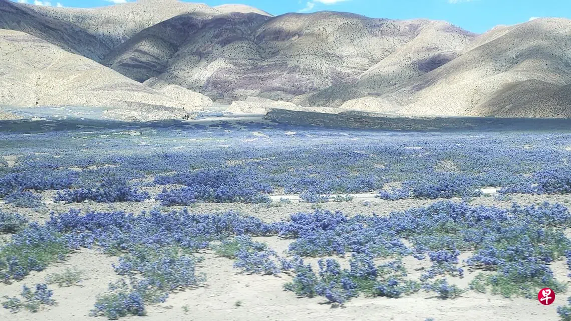 进入日喀则后,一路上高原起伏,多数山岩裸露,一片荒凉。车子沿着G318公路行驶,公路两旁开始出现一丛丛开着蓝紫色花朵的植物。隔窗外望,一整片蓝紫在山野间铺展开来。在如此干燥少雨的环境里,那一片片从山麓延绵一地的顽强蓝紫,其美丽丝毫不逊于其他温带地区的花海。