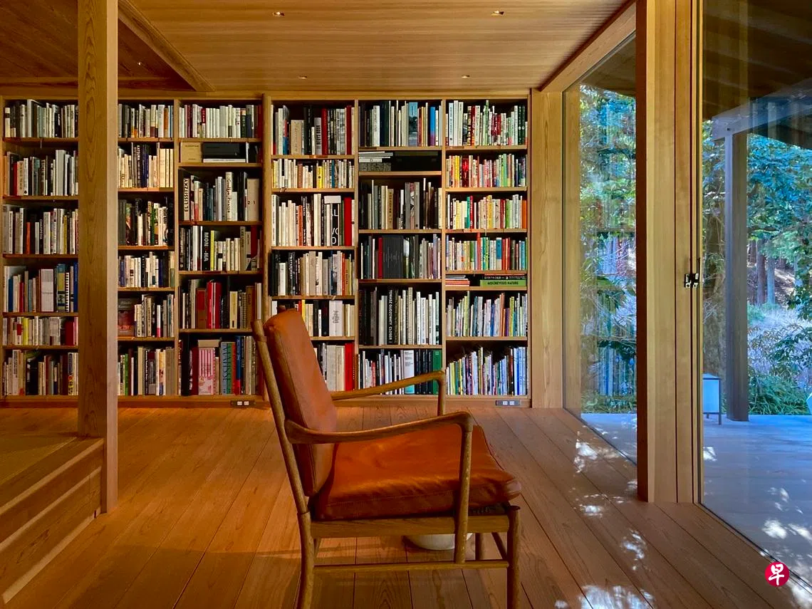 “鈍考donkou/喫茶 芳 Kissa Fang”是日本知名选书师幅允孝所打造的、完全预约制的私设图书室兼喫茶室,早在2023年就已经开放付费造访,但我迟至去年年头才在日本杂志发现它的存在。也有人称之为“图书馆兼咖啡馆”,但我觉得向日文借来的“图书室”和“喫茶室”更贴切,因为来到这样一个大片树林毗邻的图书室,感觉更像是一个人让你随意使用他的书房,还在吧台为你煮了一杯自家手工焙煎咖啡,但又从头到尾不打扰你,只希望你能够放下手机,有意识地收起尘世杂讯,把一个半小时留给自己,或者待在室内和一本书静静相处,或者坐在阳台和大自然好好相对。