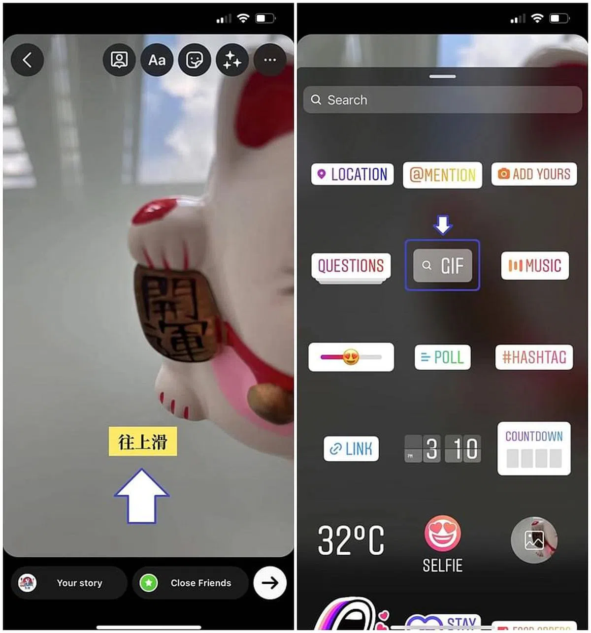 设计好后,点击Your Story,限时动态就完成啦!GIF动图最大的特点就是非常生动活泼,用它来拜年绝对让人印象深刻!