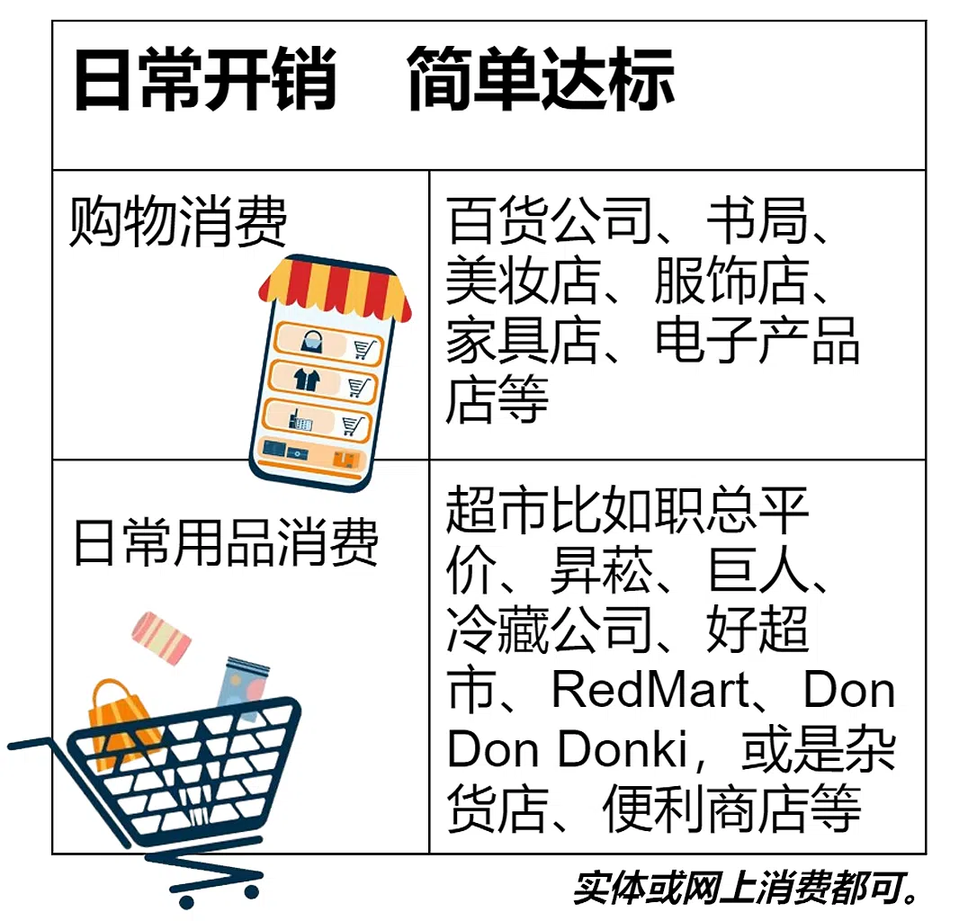 要注意的是,到药妆店购物、餐馆用餐,以及服务类消费如理发,或是账单支付如缴付水电费、学杂费、保费等不算是有效消费。