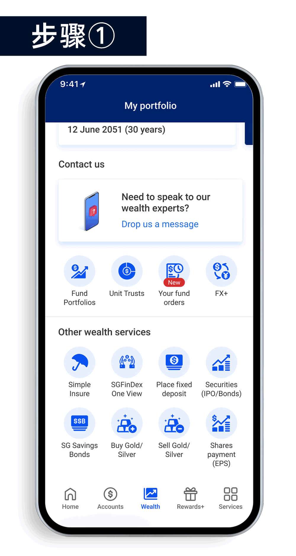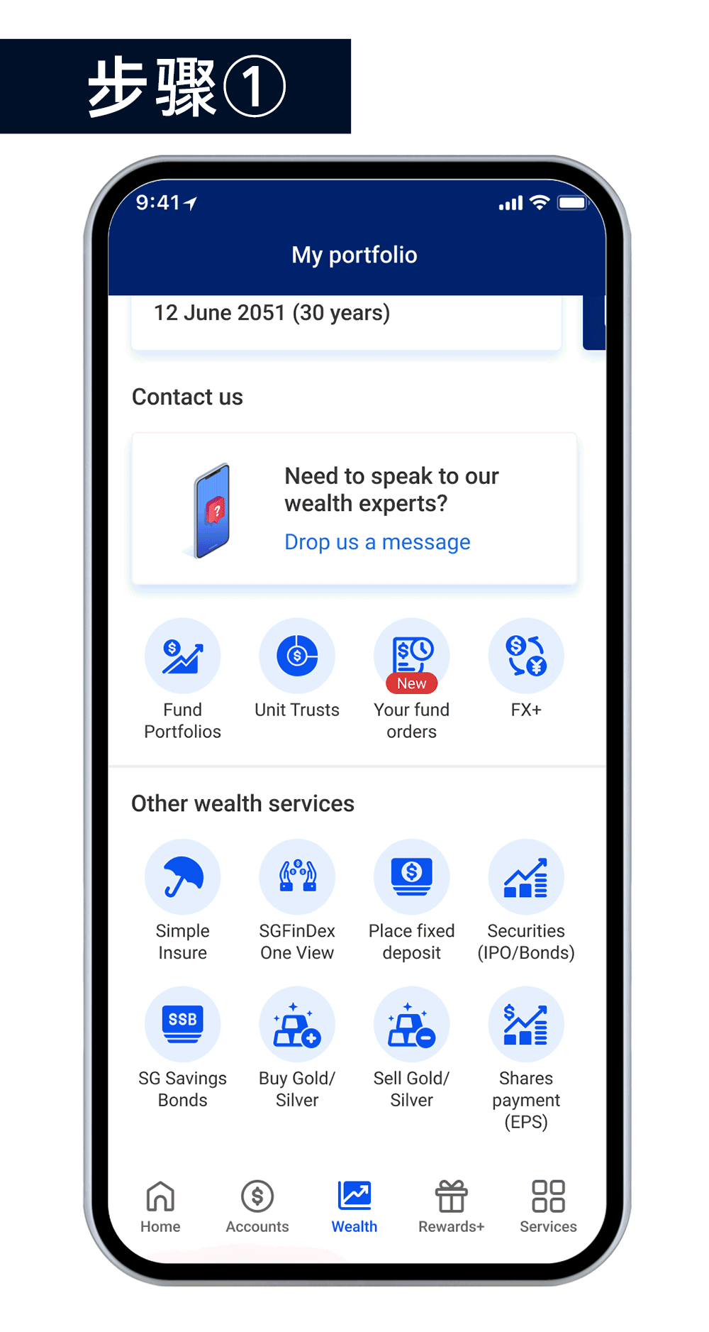 - 在UOB TMRW应用的“Wealth”页面点击“Place fixed deposit”