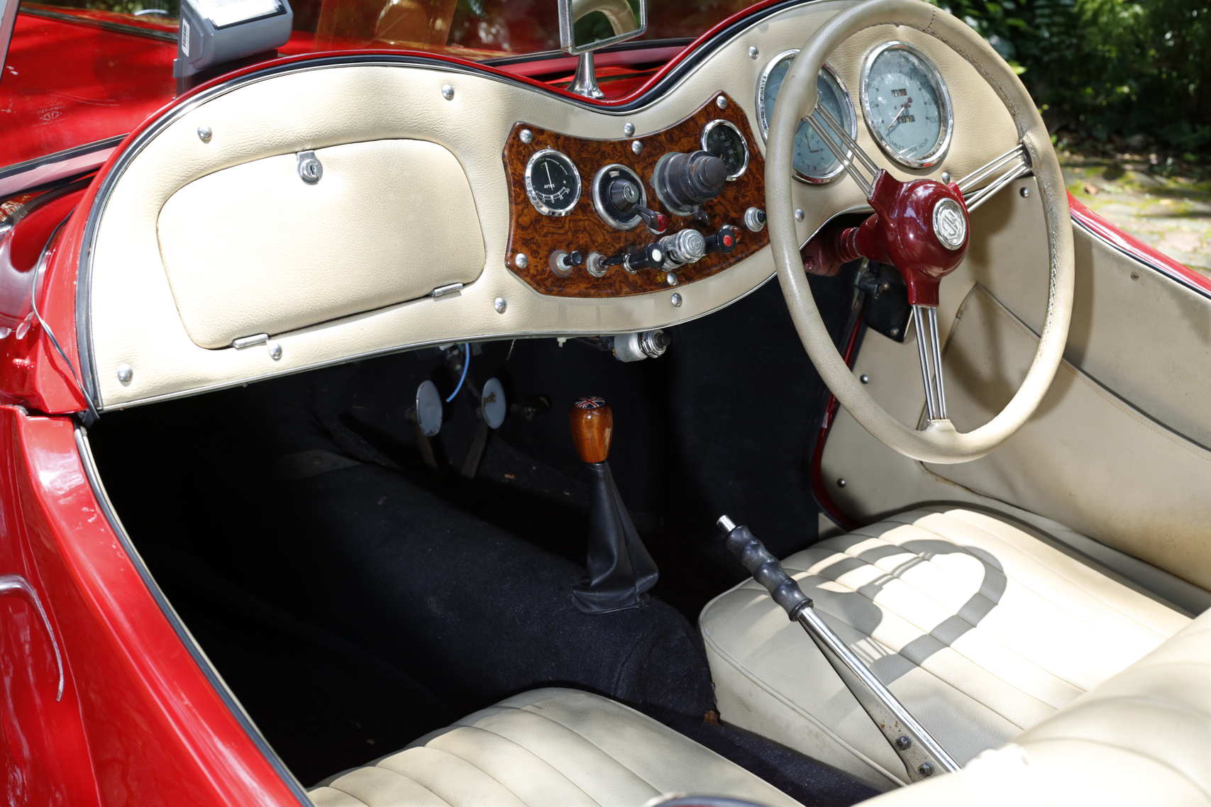 这辆MG TD双人座经典红色开蓬跑车,到哪里都成了众人瞩目的焦点,很吸眼球。