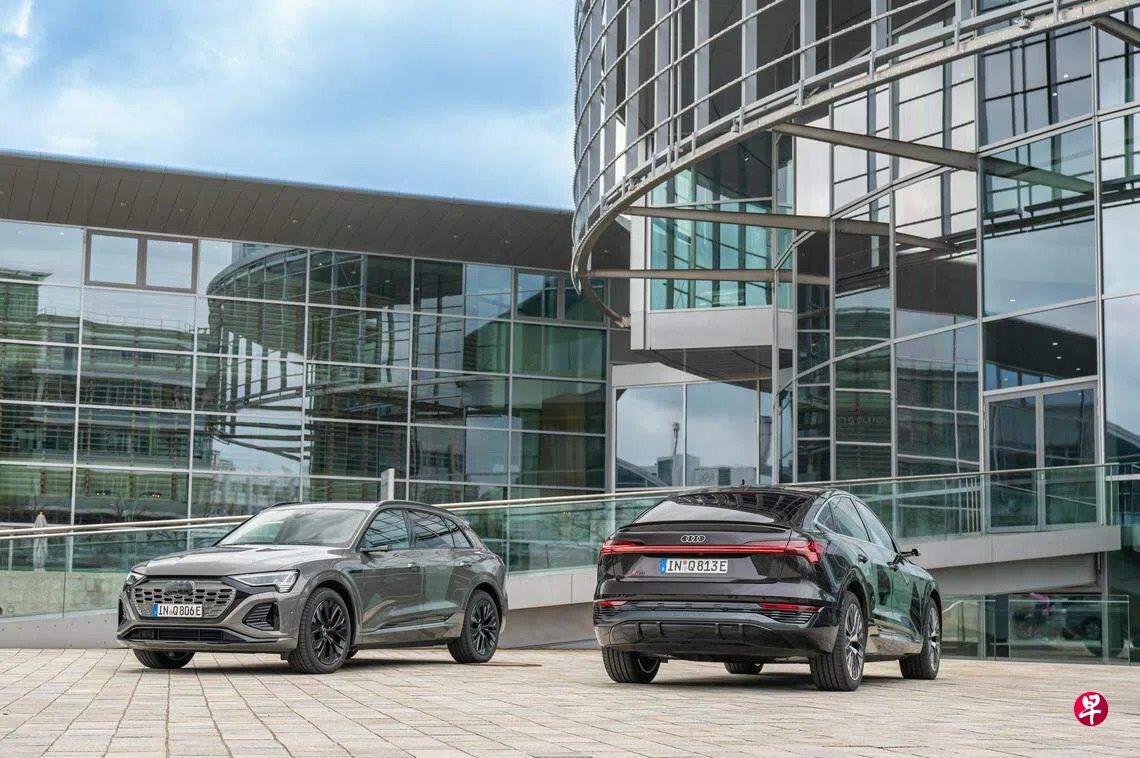 奥迪(Audi)的Q8跨界电动SUV有Q8 e-tron和Q8 Sportback e-tron两个动力稍微不同的型号,外形几乎没差别。其三围尺寸为4915x1937x1619毫米(Sportback)或1633毫米(SUV),提供宽敞空间和舒适度。按照新加坡标准,这是一辆大型车,不过与旧版Q8相比,有全新前后设计,车鼻与车头大灯更扁长,车尾灯也左右连成一线,轮廓明显更时尚,新的二维四环标志也更简洁。为确保新家族标志在车前更引人注目,奥迪现在使用单框轻型扰流板作为中心元素来突出四环标志。