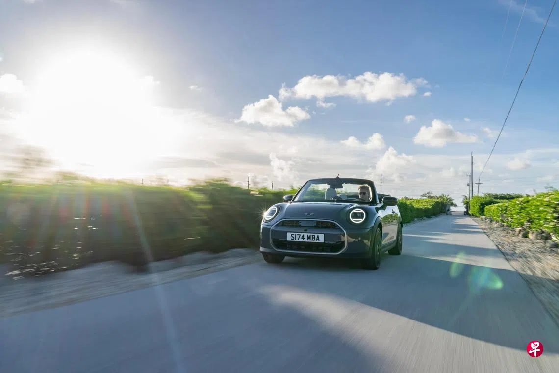 宝马(BMW)旗下的Mini近日在新加坡推出Cooper敞篷车,全自动软顶能在18秒内完全打开,让阳光与微风瞬间涌入座舱,带来纯粹驾驭快感。车子外观采用Mini家族设计,如圆形头灯、双色车身、机械式门把手等。