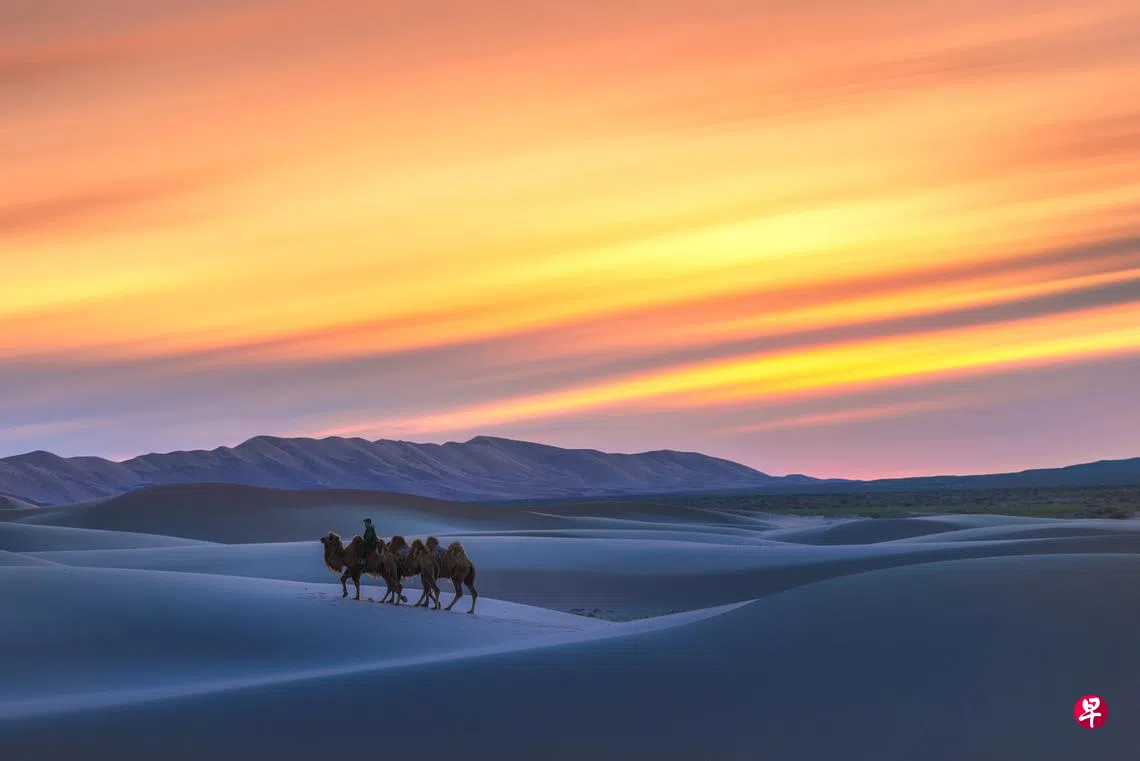 我一直向往到沙漠走一趟,探索它的神秘与辽阔,骑上骆驼行走大漠。这次走访蒙古,来到全球第六大沙漠戈壁沙漠(Gobi Desert),走在荒凉的沙漠上,才发现这是一场意志力和体力的拉锯战,因为要在细滑的沙丘上一步一步往上爬,其实很费劲。我一度想在半途放弃,但心想千里迢迢来到这里,还是坚持一步一步慢慢走,告诉自己一定要爬上去站在最高点。