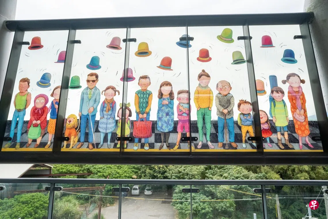 台湾知名绘本作家几米以小女孩搭乘轻轨列车后的幻想为主题,为绿山线的11个站量身创作了《闭上眼睛一下下》绘本及公共艺术,堪称全台最可爱的艺术铁道。乘客在搭轻轨时,仿佛置身童话世界,在绿山线的每个月台候车空间、玻璃帷幕及主题列车上,与小女孩或绘本中的角色相遇,甚至跟随着她“闭上眼睛”,倾听她述说内心的故事。