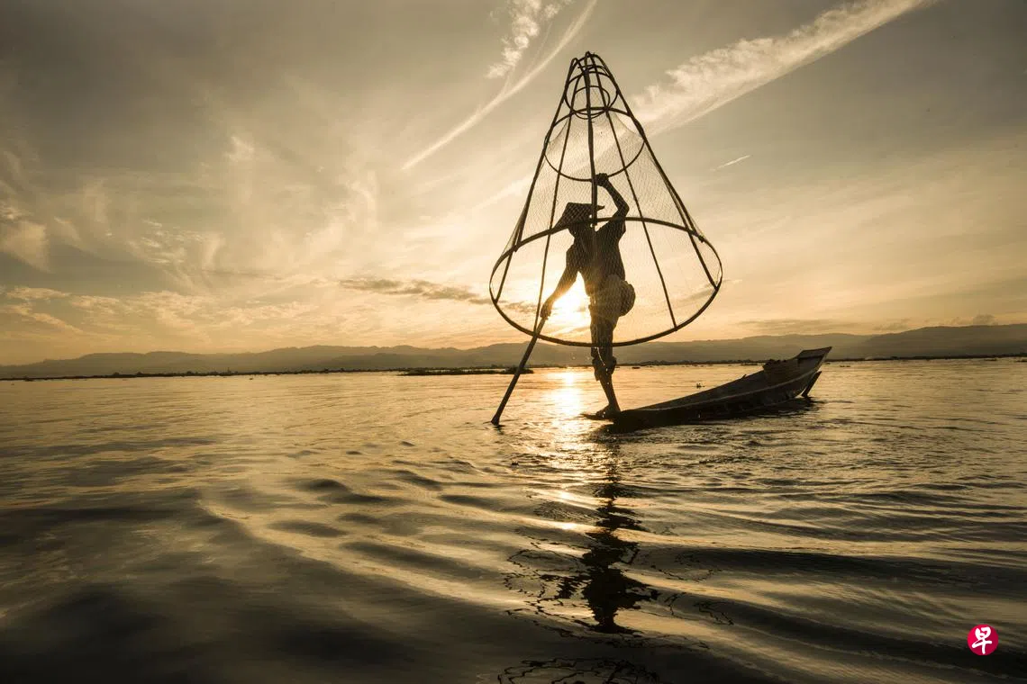 缅甸茵莱湖(Inle Lake)三面环山,因地势高,湖面凉气袭人,是著名的避暑胜地。