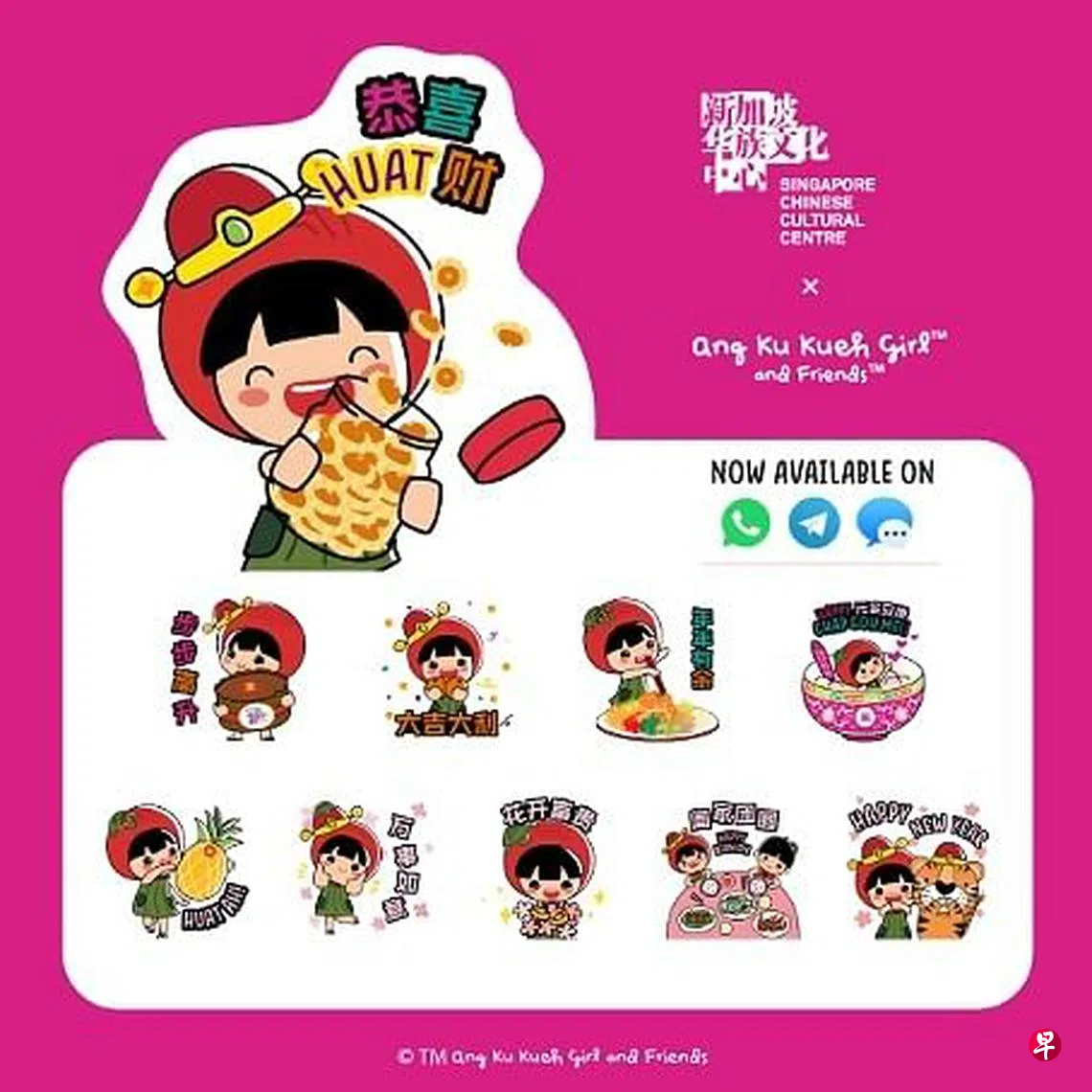 即日起至2月15日,公众可到新加坡华族文化中心一楼接待处领取限量版的免费红包封。每套有五款设计,送完为止。