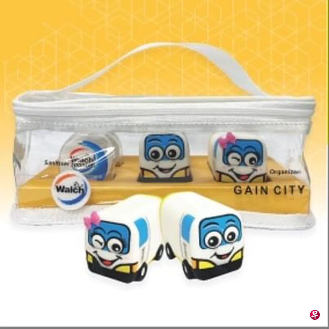 丰城为本次慈善活动设计了一款迷你货车主题的消毒洗手液便携套装。两支轻巧的迷你货车洗手液套包装在一个透明的手提袋里,外送两瓶20毫升Walch洗手液,只售10元。洗手液用完后,还可到丰城旗下的零售店免费添加。